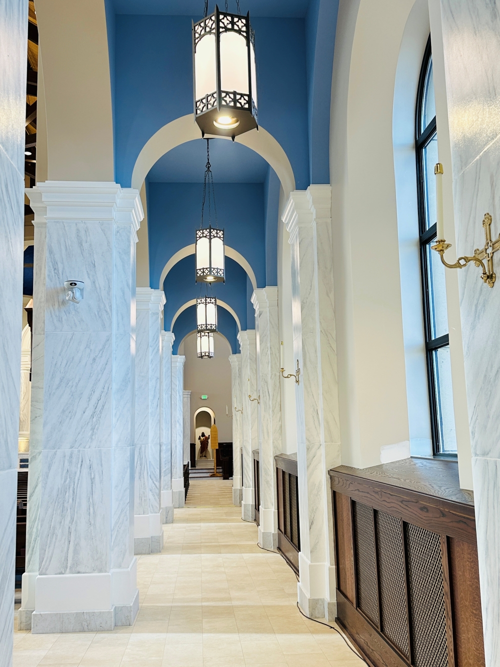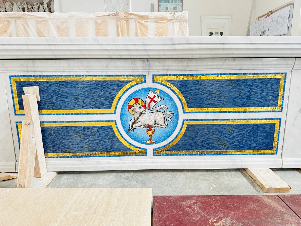Stations of the Cross, murals, and relief carvings thoughtfully integrated into architectural and liturgical context.